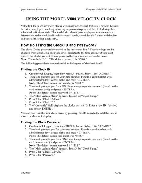 Link Download v800 velocity clock troubleshooting Google eBookstore PDF